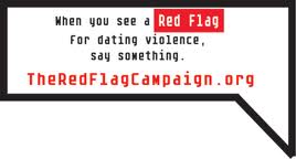 The Red Flag Campaign is a public awareness campaign designed to address dating violence and promote the prevention of dating violence on college campuses. The campaign was created using a “bystander intervention” strategy, encouraging friends and other campus community members to “say something” when they see warning signs (“red flags”) for dating violence in a friend’s relationship. The campaign posters reflect racially and ethnically diverse models, and illustrate both heterosexual and same-sex relationships.